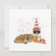 Uma ilustração fofa de um tigre se divertindo! Tigre usando um chapéu de festa em forma de cone de trânsito e soprando uma corneta de festa com confetes caindo sobre ele. Que as celebrações comecem! Perfeito para quem ama ilustrações engraçadas de animais. Ideal como presente de aniversário, decoração de berçário, arte para quarto de crianças, decoração de casa, presente de Natal ou para qualquer outra ocasião especial.