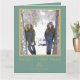 Elegant green golden hand written script font Merry Christmas and Happy New Year photo card.