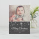 Cartão Festivo Moderno Feliz de Natal. Design festivo com flocos de neve e uma foto - insira sua foto no modelo. Personalize o cartão.