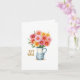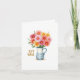 Esta carta de boas-vindas apresenta uma ilustração encantadora do estilo aquarela de um belo buquê de margaridas vivas 🌼 em tons de rosa, vermelho e amarelo. As margaridas estão amavelmente organizadas em um jarro branco com listras azuis bonitinhas, adicionando um toque de encanto arecedor ao design. As flores são exuberantes e transbordantes, com algumas pétalas a espreitar para fora da armação, dando uma sensação de abundância e alegria. No canto inferior esquerdo, as palavras "GET WELL" são escritas elegantemente numa fonte de ouro brilhante, destacando-se contra o fundo branco nítido. Este cartão traz certamente um sorriso para o rosto de qualquer um e clareia seu dia com suas cores vibrantes e seu design animador. Vai logo! 🌟