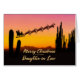 Um cartão de Natal para sua nora mostrando Papais noeis voando sobre o deserto. Muitos cactos altos são vistos na silhueta. Deseje um feliz Natal do deserto com um adorável cartão de cor sunset.