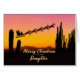 Um cartão de Natal para sua filha mostrando Papais noeis voando sobre o deserto. Muitos cactos altos são vistos na silhueta. Deseje um feliz Natal do deserto com um adorável cartão de cor sunset.