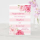 Parabéns no cartão do dia do casamento para filha e filho com listras rosa e brancas e flores rosa-d'água, e verso sentimental.
