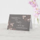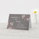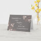 Parabéns no cartão do dia do casamento para filha e filho com flores cor-de-rosa e cinza, e verso sentimental.