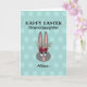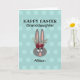 Faça o dia dela com esta Bela neta Páscoa Coelho Coelho. É moderno projetado com um fundo pastel personalizável e um lindo coelho engraçado de cinzas com orelhas altas e flores de burgundy. O texto é "neta Felz pascoa" e seu nome na frente da carta. O fundo tem um padrão de bolinhas de tons de sombra mais claro. A placa dentro tem uma saudação personalizável simples e o nome "de" da sua assinatura. Clique na opção personalizar modelo e siga os prompts.