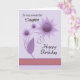 Cartão de Aniversário Moderno num design de arte digital floral em tons roxos suaves com uma borda rosa para a sua Filha no Aniversário com um verso doce no cartão interior que você pode usar ou adicionar seus próprios sentimentos. ©2015 - SmudgeArt/Madeline M Allen