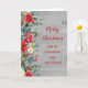 Feliz Natal para a filha e o filho no cartão com folhagem verde de cor d'água, padrão de madeira rústica e pinecones e verso pensativo.