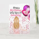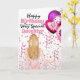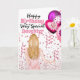 Cartão Filha segurando balões cor-de-rosa confetti aniver