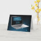 Se o seu filho passa tempo num computador, este é o cartão perfeito para lhe desejar feliz aniversário. O computador está flutuando no céu noturno, com estrelas à volta deste computador laptop tecnológico.