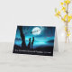 Um cartão de Natal para um filho e nora apresentando uma imagem encantadora de um casal silenciado sob a lua da véspera de Natal, com uma lua de cheio grande, enquadrada por uma árvore adorável, e, claro, Papais noeis!