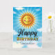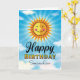 Faça o seu genro se sentir especial no seu aniversário enviando-lhe este sorridente sorridente sol amarelo e laranja flutuando no céu azul com nuvens. O texto da dentro diz "O sol começou a brilhar um pouco mais brilhante no dia em que você estava nascer."