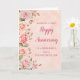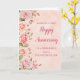 Feliz cartão de aniversário de casamento para filho e filha na lei com elegantes rosas cor-de-água rosa e primavera verde, com um padrão de ouro falso rosa.