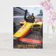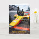 Coloque os seus desejos de feliz aniversário na pista de corrida! Este lindo filhote de Labrador Retriever preto, com aparência fotográfica, está vivendo o sonho: óculos de proteção, carro de corrida estilo Indy, pata da vitória levantada e correndo pela famosa pista de tijolos com um borrão de pura velocidade atrás dele. Um cartão perfeito para amantes de cães, donos de Labradores, fãs de corridas, aniversários inspirados em Indy e qualquer pessoa que mereça um grande sorriso no seu dia. Ótimo para amigos, familiares, colegas de trabalho e qualquer pessoa que ame um pouco de potência junto com o seu poder de filhote.
