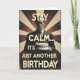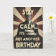 Faça com que o aniversário deles se sinta como uma missão ultrassecreta com este hilário cartão "Fique Calmo... É só mais um aniversário"! Projetado no estilo de um antigo poster de propaganda, ele apresenta uma pessoa séria com um traje solenemente segurando um bolo de aniversário, como se fosse de extrema importância. A textura de papel envelhecido e os raios dramáticos que emanam do bolo acrescentam um contraste humorístico, fazer-o uma escolha perfeita para sopros de história, amantes de vintage, ou qualquer um que aprecie humor ousado e retrógrado.