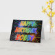 This vibrant, multicolored and fun birthday greeting card design features the message "HAPPY BIRTHDAY," and the common first name "BOBBY" with the letters having a colorful rainbow spectrum like gradient coloring pattern. The background of the front also features a colorful pattern inspired by the appearance of bursting celebratory fireworks. The inside features a customized greeting message, or could perhaps be cleared and left blank if a message is to be written by hand instead. A birthday greeting card like this could be fun to give to somebody named Bobby on their birthday. [~Z0000350]