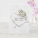 Coração de fita de cetim de casamento branco com buquê de hera e anéis de coração dourado para congratulações de recém-casados. Os nomes e a data do casamento são editáveis.