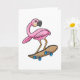 Cartão Flamingo as Skater with Skateboard