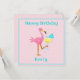 Flamingo rosa com coquetel num Cartão de Aniversário rosa. Concebido por Jacqueline. Personalizado por você. Todos os aspectos do projeto podem ser editados de acordo com o processo. Se precisar de ajuda com isso, me deixe uma mensagem.