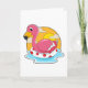 Cartão Flamingo nadando com bóia de salvamento