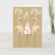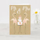 Uma design de casamento na moda divertida com um toque retrógrado. Um par de flamingos de pêssego fica em ambos os lados de um bolo de casamento com corações de pêssego, confete, anéis de ouro e curvas contra um fundo de troca de cor marrom neutro. Um design personalizável para você personalizar com seu próprio texto, imagens e ideias. Uma imagem de arte digital original.