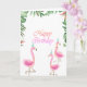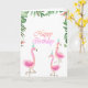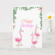 Cartão Flamingos Rosa Adoráveis Folhas Tropicais