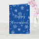 Flocos de neve brancos e azuis Feliz cartão de Hanukkah que você pode personalizar a mensagem do cartão interno se desejar. Este cartão de Hanukkah faria um ótimo cartão de recordação para ele ou ela.