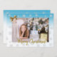 Belo cartão de Natal de flocos de neve brancos e azuis personalizam fotos.