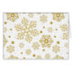 Design de Natal com flocos de neve ouros e estrelas sobre fundo branco
