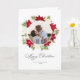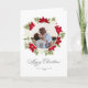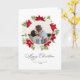 Cartão Flor de Poinsettia e Foto Redonda de Pinheiro
