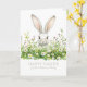 Cartão Florais de coelho branco felz pascoa personalizado