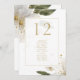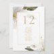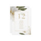 Esses números de mesa de casamento e na moda de chic e cartões de assentos de hóspedes contêm um número de tabela personalizado e uma lista de assentos de hóspedes editáveis. Um conjunto contemporâneo de fontes mais um adorável design de design de cor foliar floral e uma camada com borda de ouro de imitação, estabelece a cena de um caso contemporâneo e elegante. Tanto a frente como a parte traseira da placa são idênticas para fácil visualização.