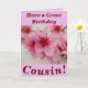 Uma bela flor de pêssego rosa faz uma imagem de excelente para este cartão floral de aniversário para Primo. O texto pode ser facilmente personalizado como desejado.