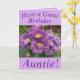 Belas flores de rosa roxo fazem uma bela imagem para este cartão floral de aniversário para a tia. O texto pode ser facilmente personalizado.