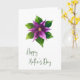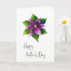 Celebre a Mamãe com uma elegância atemporal. Este cartão de dia das mães apresenta uma delicada flor pintada à mão em tons suaves de roxo e verde com um centro dourado para um visual refinado e moderno. Ideal para mães que amam designs florais, botânicos e minimalistas, este cartão é perfeito para o Dia das Mães de um filho, filha, qualquer pessoa de qualquer gênero ou toda a família.