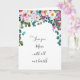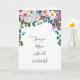 Cabeçalho floral com flores coloridas, incluindo muitas sombras de pinks e verdes a um azul púrpura claro. Cite a dentro esquerda e a mensagem de saudação dentro com um buquê floral semelhante no topo.