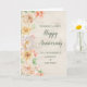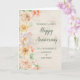 Feliz cartão de aniversário de casamento para o madrinho e sua esposa com elegantes flores de aquarela pastel e primavera verde e um padrão de madeira rústica.