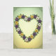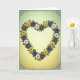 This design shows a heart-shaped wreath of daisy-like flowers centered on the card, with petals in deep purple, sunny yellow, and crisp white nestled among rich green leaves. The blooms overlap closely, like a gathered bouquet, and the snug spacing gives the heart a cozy, affectionate feel, as if it’s hugging the space inside. Behind the wreath, the background shifts from spring green at the top to a softer yellow-green near the bottom, adding a gentle glow 💚. A thin ornamental border frames the scene, with small geometric touches in the corners and tiny floral accents along the top and bottom edges. There’s no character shown, but the way the flowers lean into each other reads like close friends standing shoulder to shoulder ☘️. Any text would sit neatly within the open center of the heart, in a simple white or dark green line that stays easy to read against the gradient. The heart wreath remains the main focal point, surrounded by the delicate border details and the smooth green-to-yellow-green backdrop.