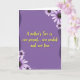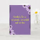 Designed with a deep purple background, this card centers on a tender Mother’s Day message that feels like it’s speaking softly to someone you love ❤️. The main quote, “A mother’s love is ever present... ever needed and ever true,” sits prominently in the middle in bright yellow lettering that stands out clearly against the dark field. Decorative flower clusters frame the words in the top-right and bottom-left corners, like gentle bouquets leaning in toward the message. Each bloom has multi-petaled shapes with soft lavender-to-white shading and dark, detailed centers, adding a calm, affectionate tone 🌼. Along the edges, darker purple wave-like forms curve inward, giving the layout a cozy, wrapped-around feeling. A fine dotted white line traces near these curved shapes, adding a light border detail without overpowering the center text. The top-right bouquet shows several lavender-and-white flowers with dark centers nestled against the purple corner.