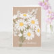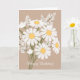 A simplicidade de um buquê de margaridas brancas, auxiliada pela letra do script branco, cria um design de cartão de saudação elegante, mas minimalista.