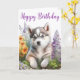 Gorgea Watercolor Siberian Husky design com flores amarelas e roxas