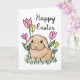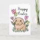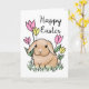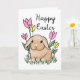 Este cartão de Felz pascoa adorável apresenta uma ilustração bonita de coelho com flores e grama de primavera. O dentro diz "Feliz, feliz Páscoa para você!" que pode ser removido ou personalizado.