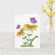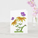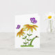 Um simples, mas fofo, cartão de cumprimentos genérico para qualquer uso, qualquer ocasião, apresentando duas flores laranja de desenho animado caprichoso com folhas verdes e caules verdes crescendo de uma grama verde saudável. Uma minúscula joaninha vermelha está sentada em uma das folhas. Duas borboletas roxas estão esvoaçando em torno das flores.