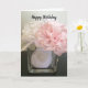 Envie a alguém uma mensagem de aniversário feliz com flores bonito de seda rosa e branca em um vaso com sotaque cardíaco. Personalizar conforme desejado.