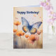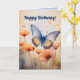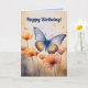 Este cartão apresenta uma ilustração de flores e uma borboleta com uma saudação editável acima dela. No interior há uma mensagem editável. Você pode alterar as mensagens ou excluí-las para criar um cartão em branco. Você também pode alterar o estilo da fonte, o tamanho e a cor. A cor do fundo em todos os lados também pode ser alterada. Este cartão de cumprimentos versátil pode ser usado para aniversários, pêsames, pensando em você, cartões de agradecimento, etc.