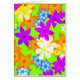 Flores 'op art' fabulosas em cores brilhantes. Um cartão vibrante que diz 'FELIZ!' As flores multicoloridas são caídas sobre um fundo verde. O cartão é vazio de ser usado como cartão de nota ou para sua própria mensagem. Veja as placas de faixa inteira na minha loja. Todos os direitos de autor de Norma Cornes.