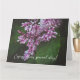 Belo cartão postal com uma foto de flores lilás púrpuras depois da chuva. Cheire! Presente no estilo Boho para amantes da natureza e jardinagem, para um parceiro ou outro amado. O texto na frente e no verso é editável. Você pode apagar o texto "Hoje, as flores estão mais floridas, o sol está mais sol, e a vida é mais horrível! "ou substitua-a pela sua própria mensagem.