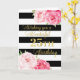 Feliz cartão de aniversário de 25 com flores cor-de-água rosa, listras pretas e verso atencioso.