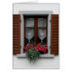 Moldura de janela e obturadores com flores vermelhas em Vaduz, Liechtenstein.