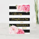 Cartão do Dia das Mães para a nora com listras pretas, flores em aquarela rosa e verso sentimental.