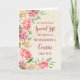 Feliz cartão de Dia de as mães para primo com flores de aquarela cor-de-rosa e verso sincero.